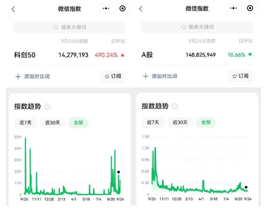 举个例子,最近“科创50”近期的热度增速,比“A股”还高。