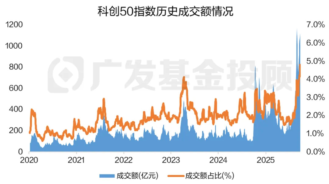 目前,科创50的成交额和成交额占比都来到了历史较高位,这也说明该指数存在一定的交易拥挤度。