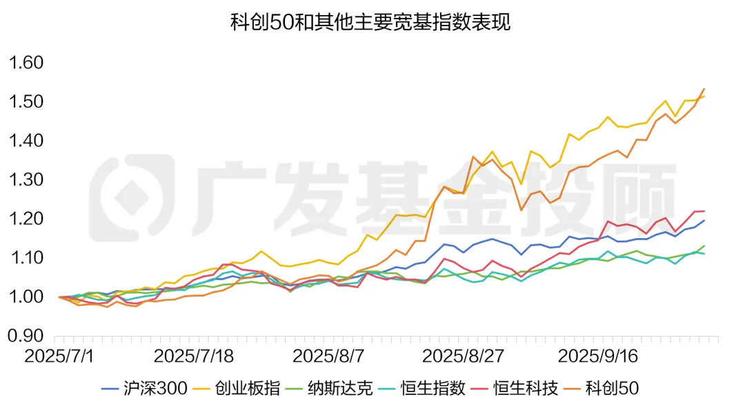 科创50和创业板指,都是今年以来关注度很高的指数。在7月至今近三个月的时间里,两只指数的涨幅双双超50%。