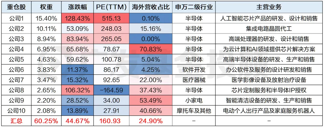 2. 这前十大重仓股7月以来的加权涨幅达到44.67%,几乎与科创50整体45.15%的涨幅持平;