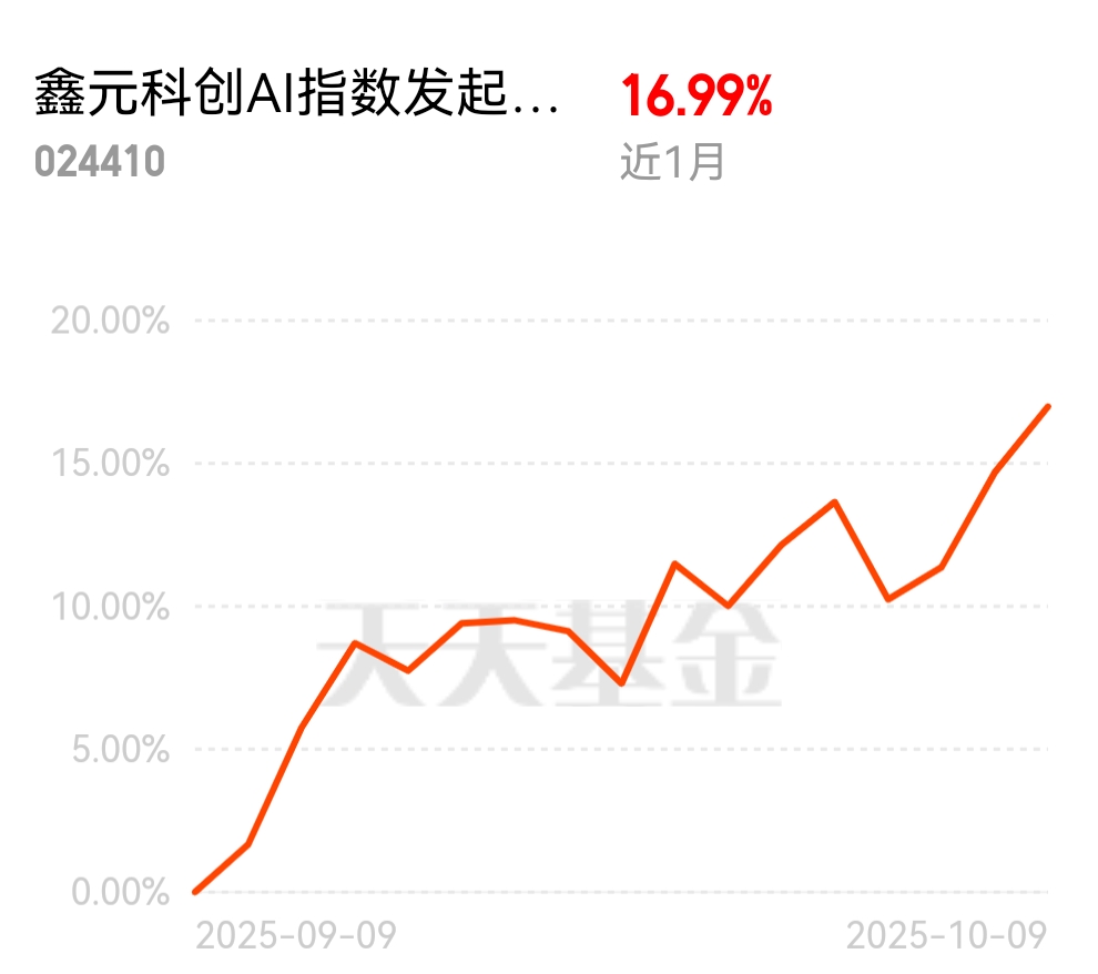 政策力挺AI,行情挡不住,$鑫元科创AI指数发起式C$昨晚涨2.01%,成立俩月
