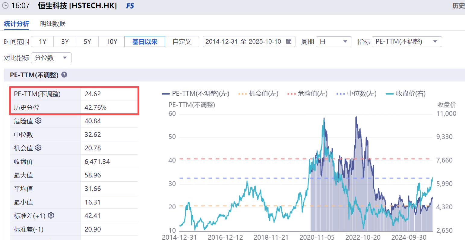 1、恒生科技指数。两个角度来看,其一是估值,当前为24.62倍,处在基日以来的42.76%,对比纳指约40倍,反复印证估值性价比。其二是资金面充沛,南下资金疯狂涌入,降息周期外资回流。