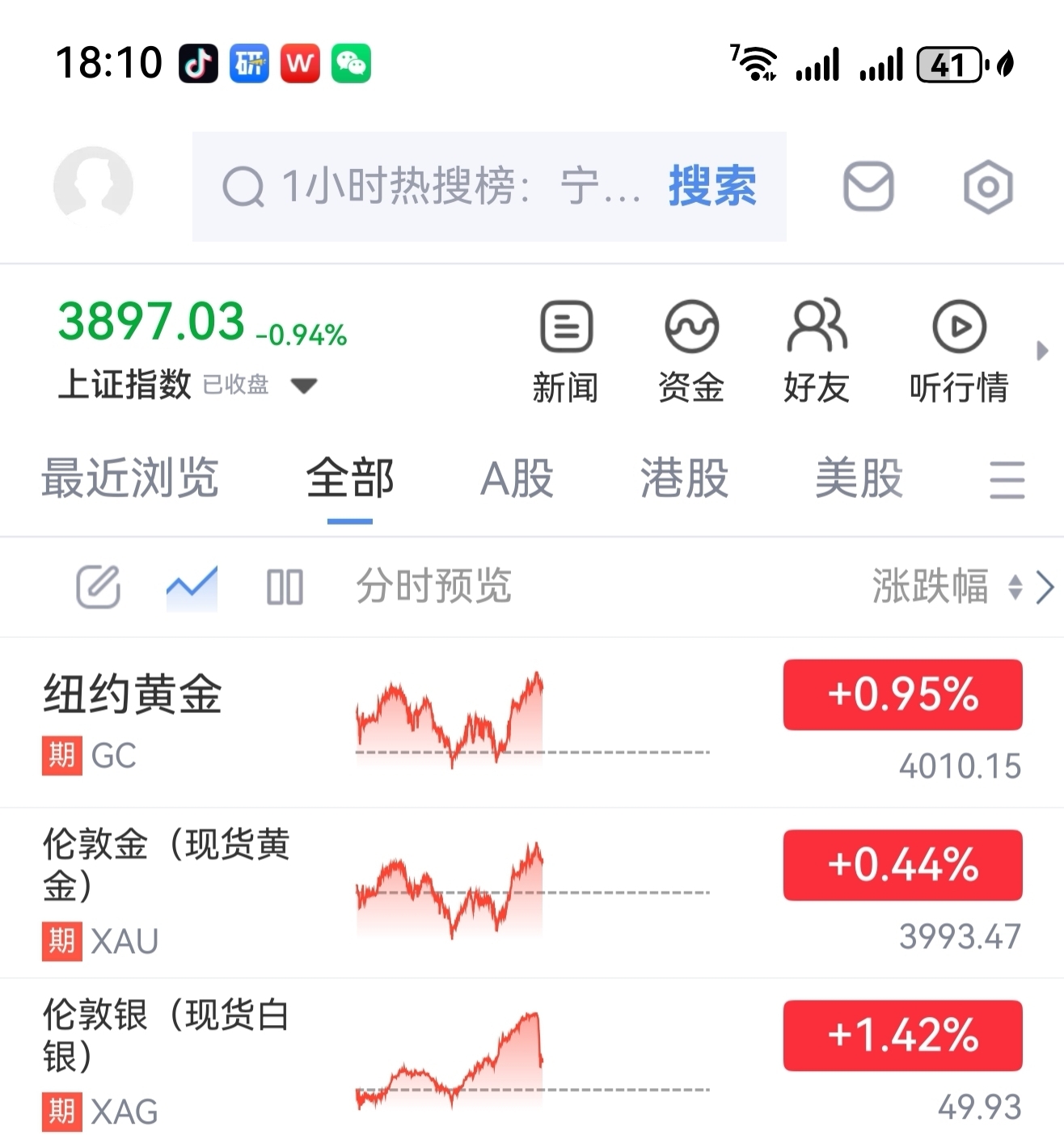 在今天下午 18点 1 0分,观察现货黄金是涨+0.44%