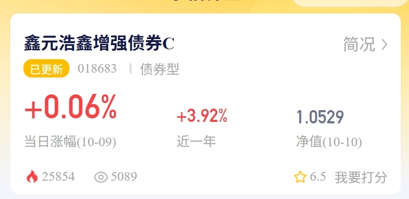 $鑫元浩鑫增强债券C$ 收到6个蛋,优秀!收益率高。