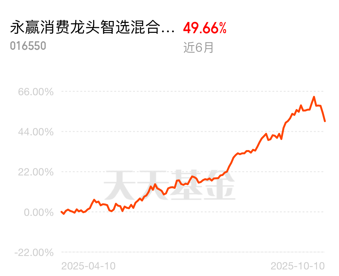 小赢家的消费龙头近6个月快50个点,感觉还挺稳的~算是个qian力选手吧,最近消费板块也有点动静 不过轮回的,我也就是打算搞点试试水嘿嘿$永赢消费龙头智选混合发起C$