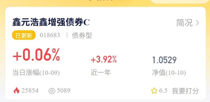 $鑫元浩鑫增强债券C$ 收益6个蛋,非常不错。挺优秀的。