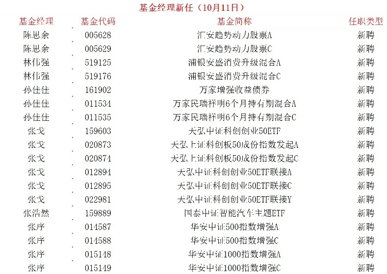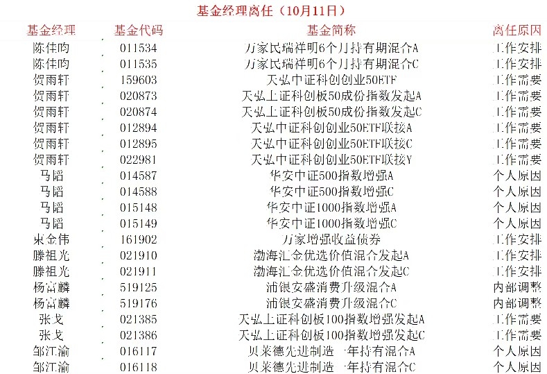 10月11日基金经理变更公告