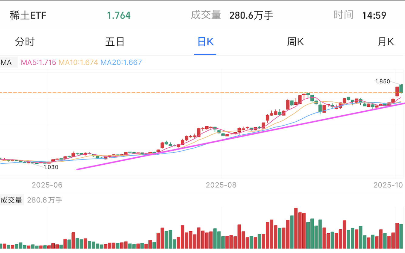 稀土近期有一波较大行情,后短期进入盘整期。前两日突然飙升,突破压力位,但很快回落,目前没有跌破支撑位,仍处于盘整期。