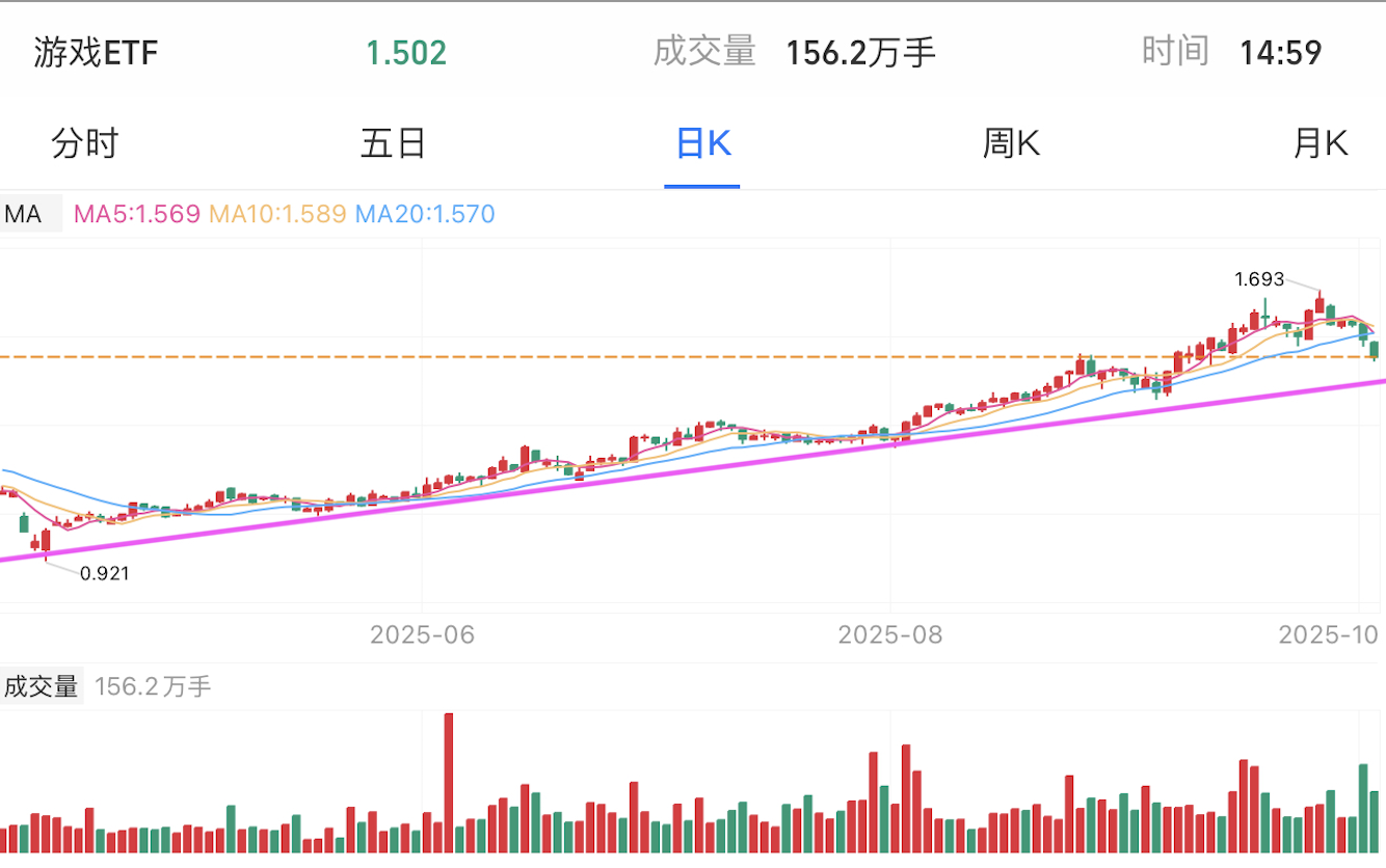 游戏近期一路震荡上行。近期较大幅度反弹后力竭回落,这两日放量下跌,已经跌破中长期上涨趋势线附近,能否跌破支撑位决定后市走向。