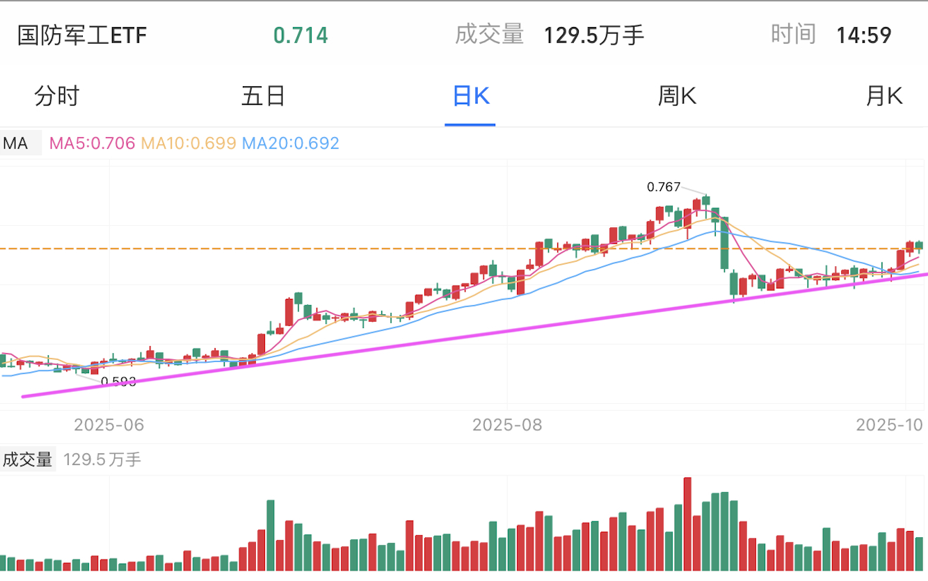 国防军此前有一波较大行情,后较大幅度回调,最近止跌横盘,目前在中长期上涨趋势线附近横盘震荡,还没有回升。