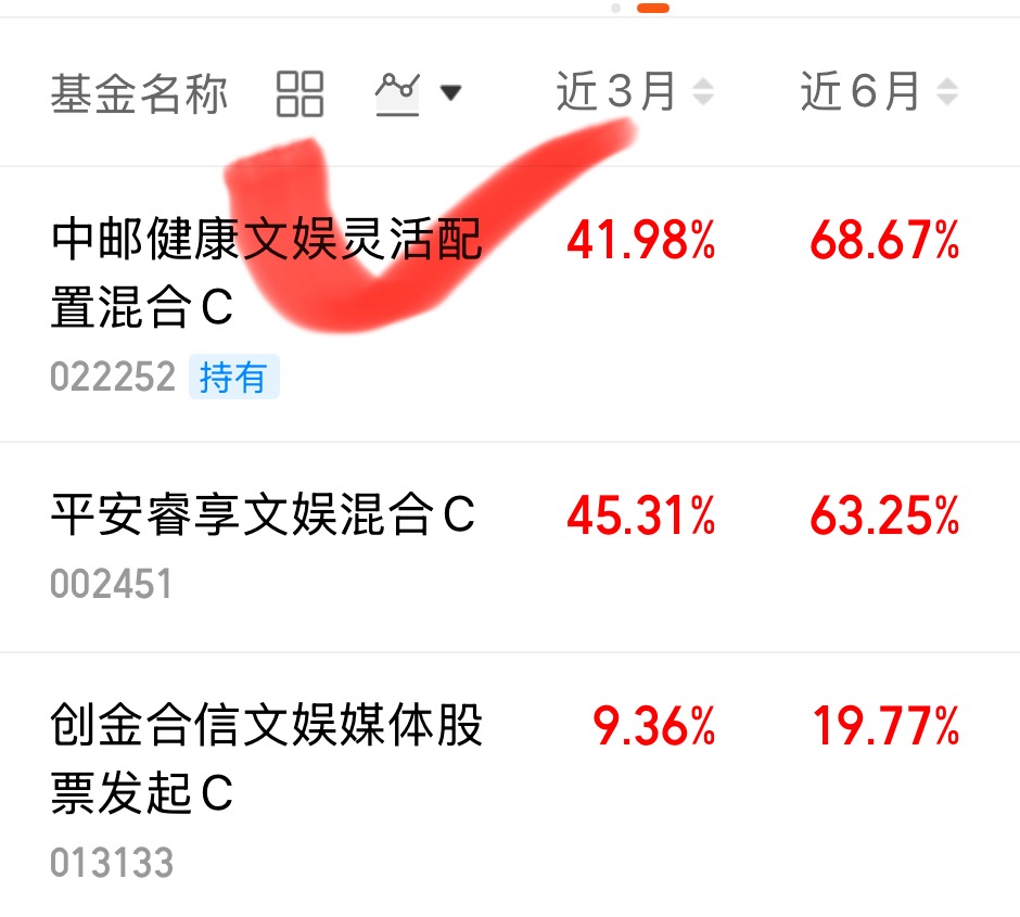 不得不说$中邮健康文娱灵活配置混合C$有点东西,近半年涨68%,投健康文娱和电子