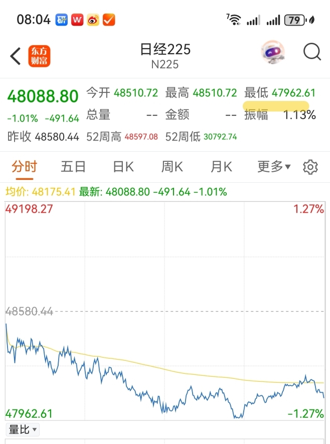 在今天上午8点之后,观察日经指数,从47962.61低开。再到后来,已经拉升到了