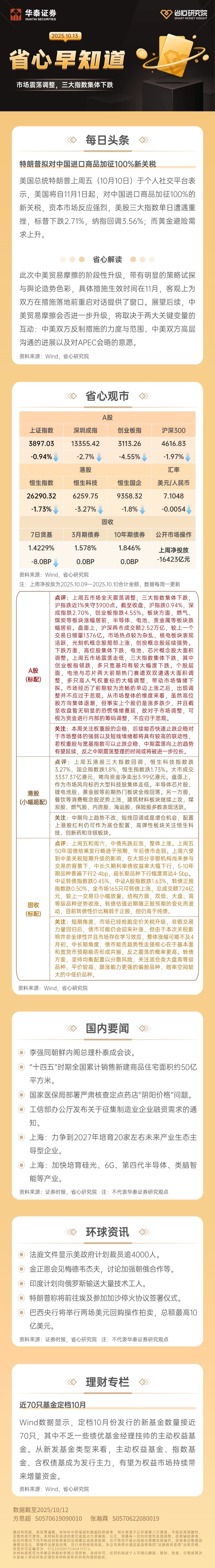 1013省心早知道——市场震荡调整,三大指数集体下跌
