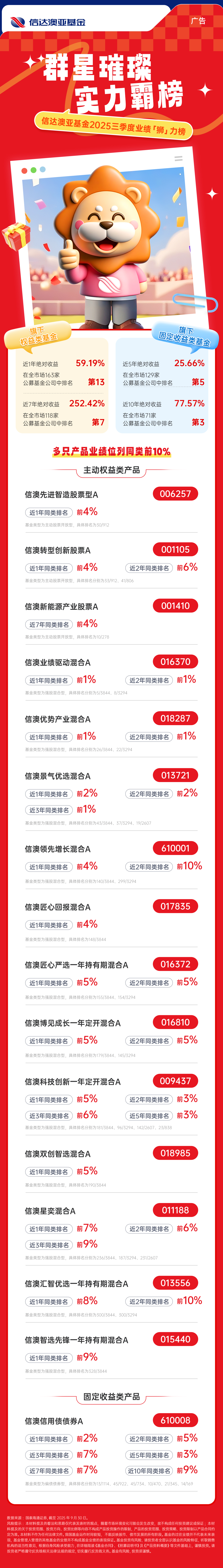 三季度信达澳亚基金“狮”力榜,权益固收双丰收!