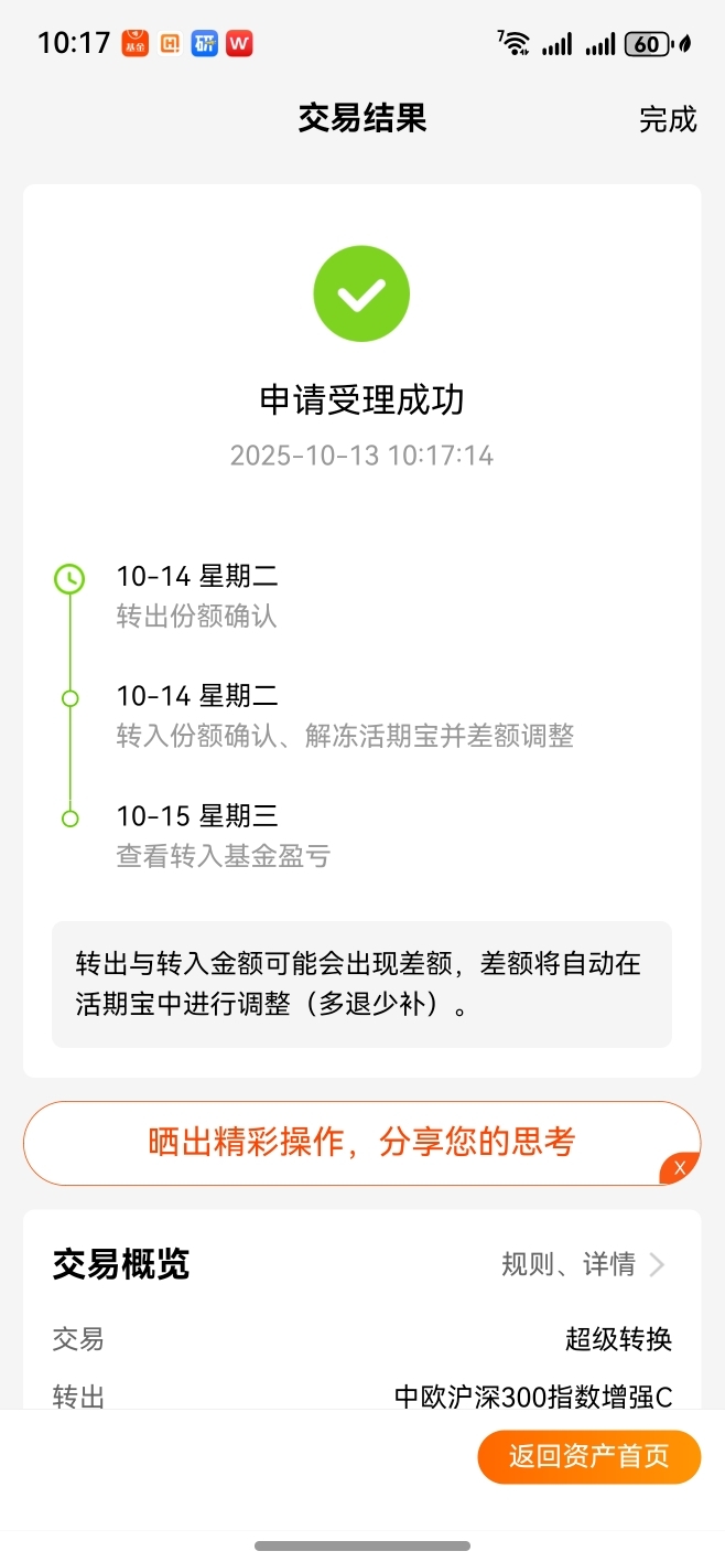 至于剩余5000份额,等下午的时候,到时候再根据情况考虑选择是否可以选择调仓转到目前持有的某个国外黄金qdll基金、或者选择调仓在上周五那天的时候,选择调仓换买某方纳斯达克100指数qdl基金也不迟的。