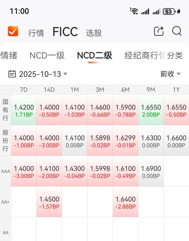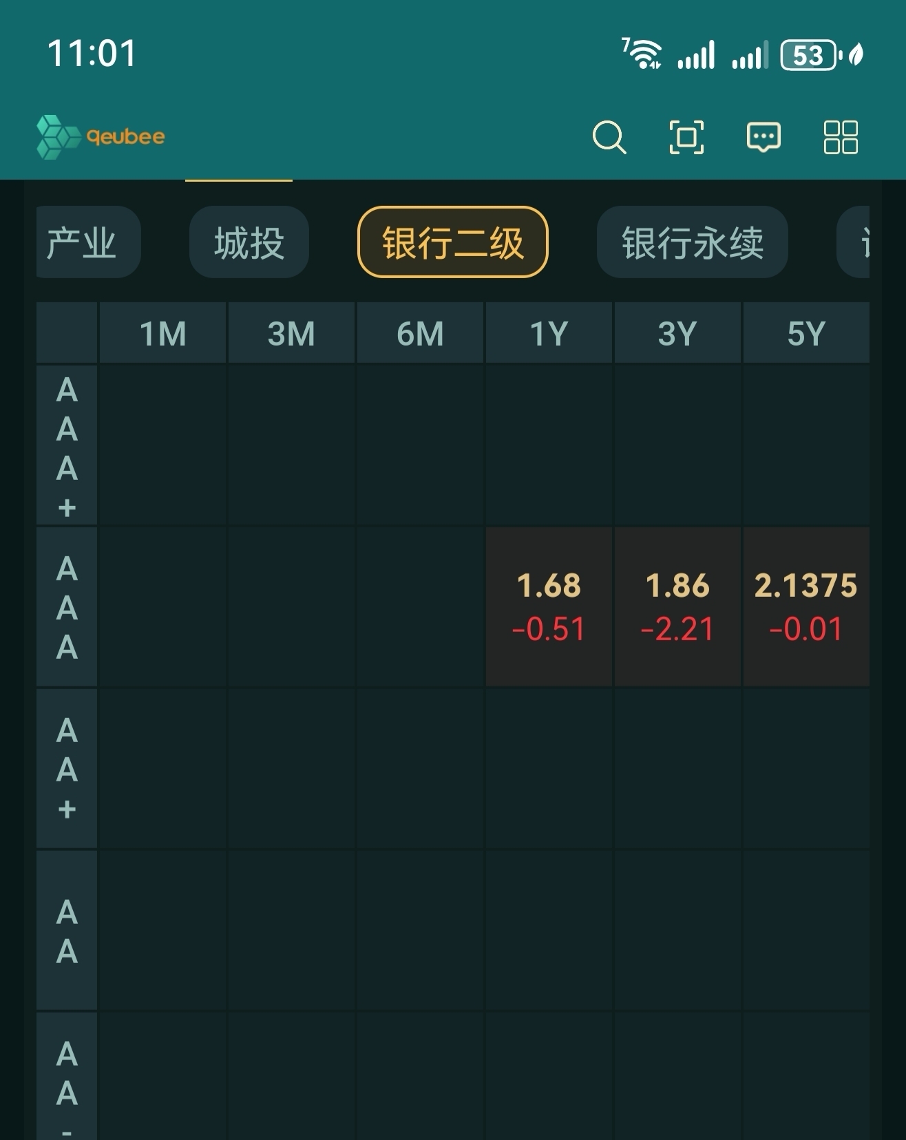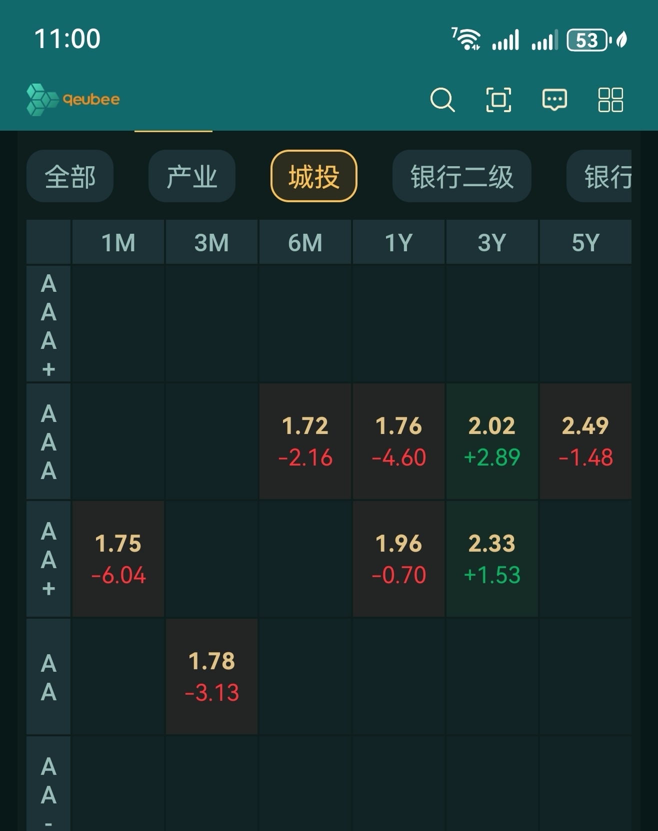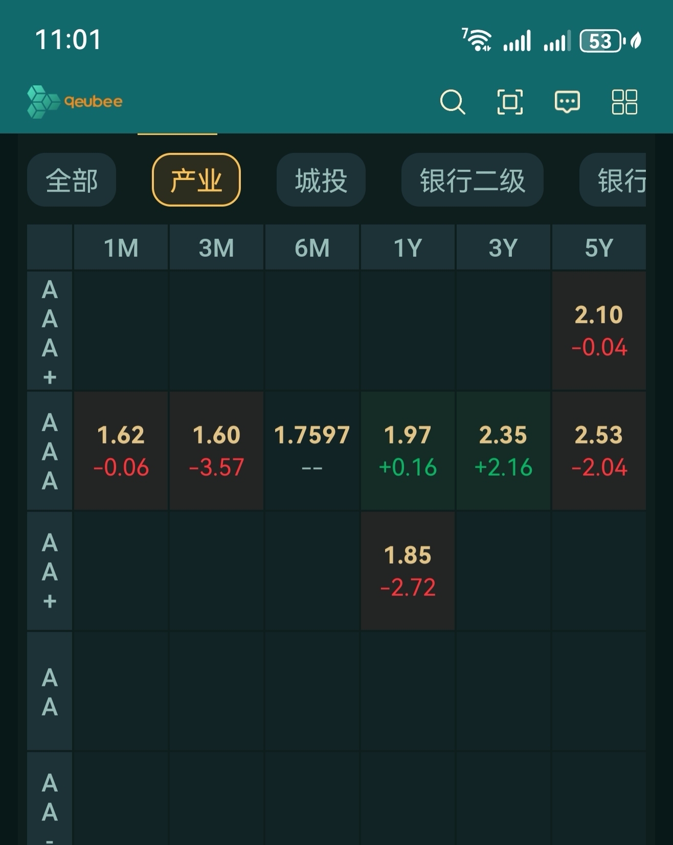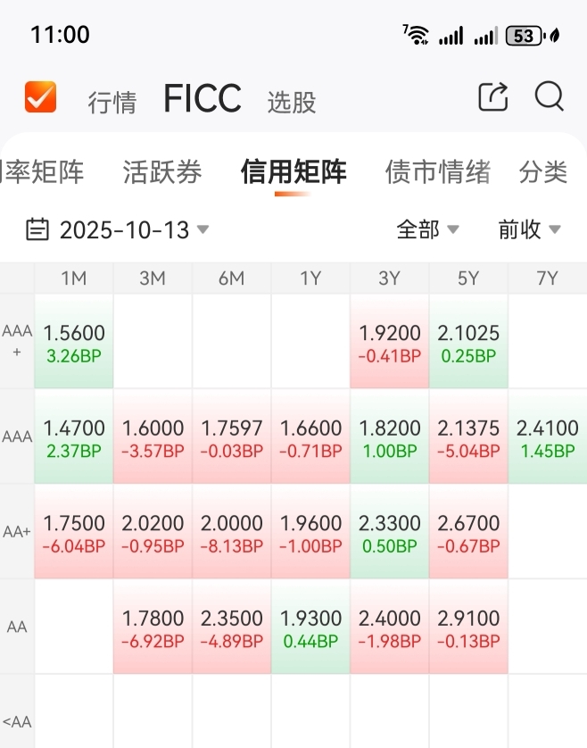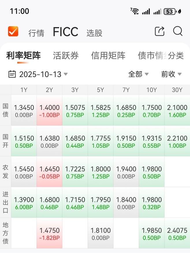 在今天上午11点,观察今天债行情。红色,是涨。绿色,是跌。