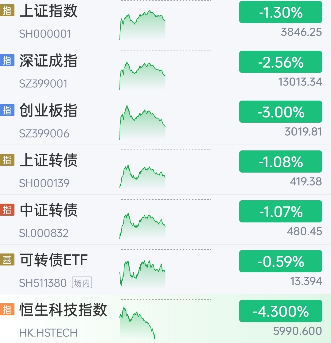三大指数集体调整,数值一个比一个大,转债也是暴雨,还有恒科,简直不忍直视……