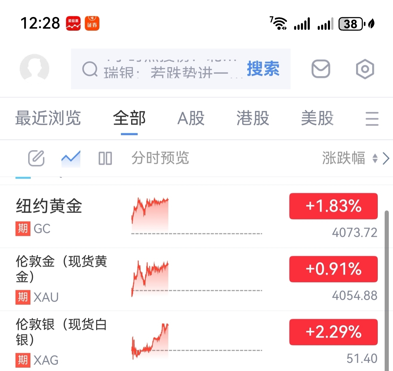 在今天中午12点28分,观察现货黄金是涨+0.91%。