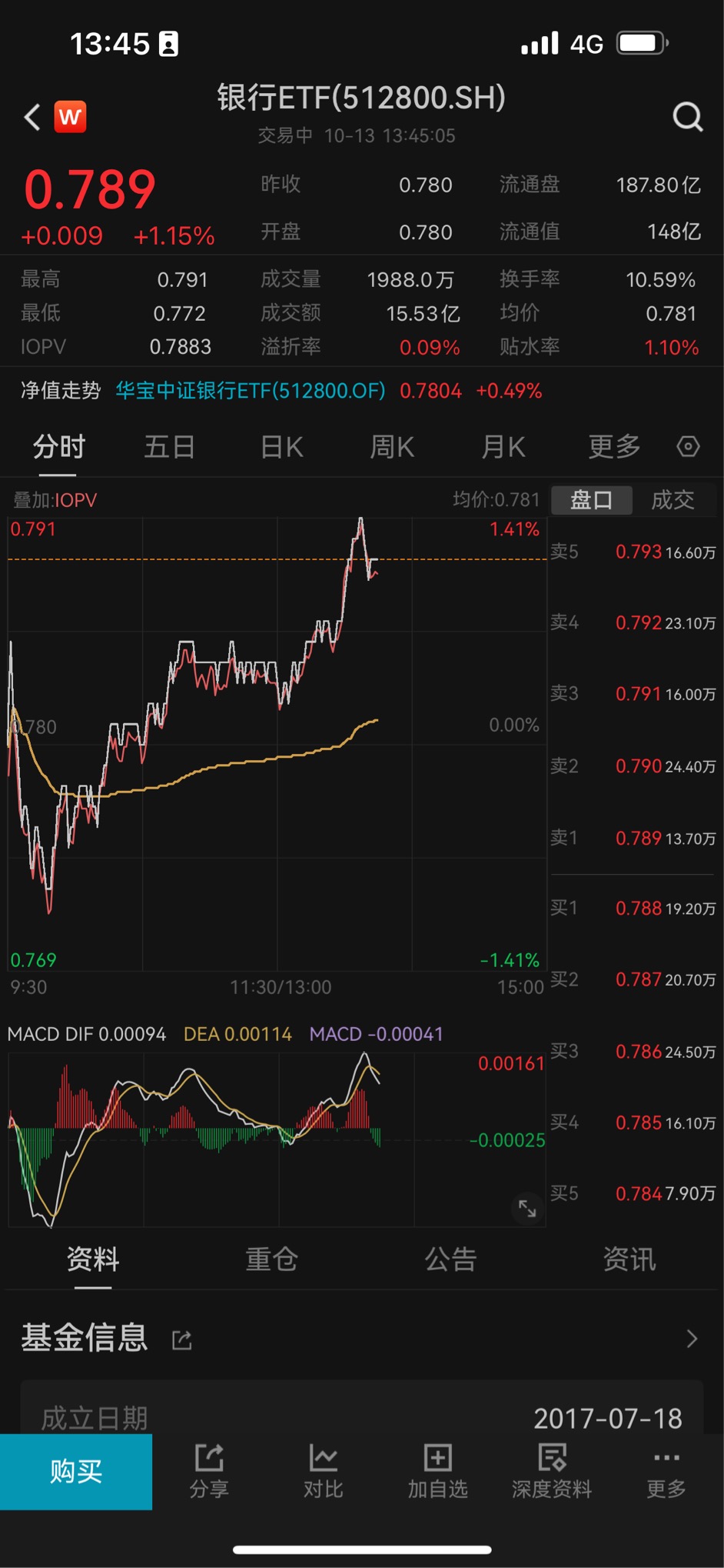 早上一致性太强砸了一波之后下午奉孝还是乖乖完成KPI拉银行$华宝中证银行ETF$