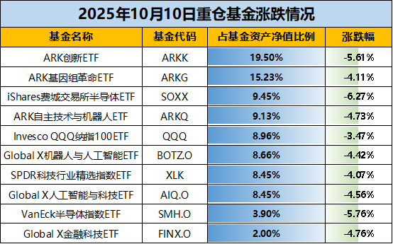 【重仓涨跌】根据基金2025年二季报披露,重仓基金中3只为“木头姐”凯茜伍德旗下聚焦于美股前沿科技的基金,合计占比达43.86%。