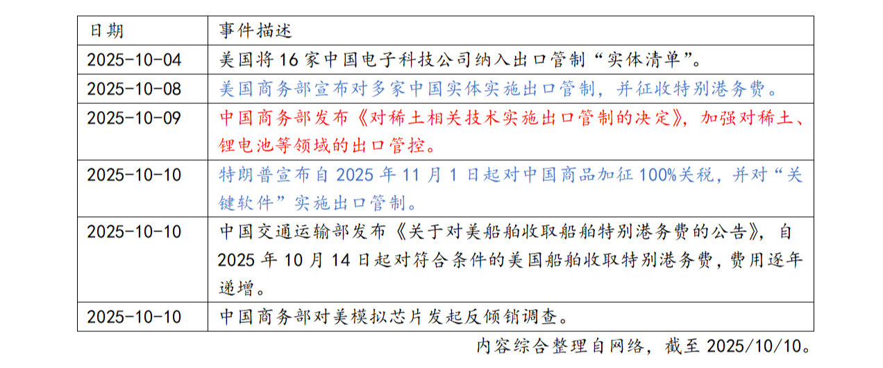 此外,美加征关税时间起点为11月1日并非立刻,而中美元首原计划可能在10月31日~11月1日韩国召开的APEC峰会上会晤,亦展现出特朗普仍留有一定谈判空间,TACO有望再度上演。
