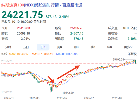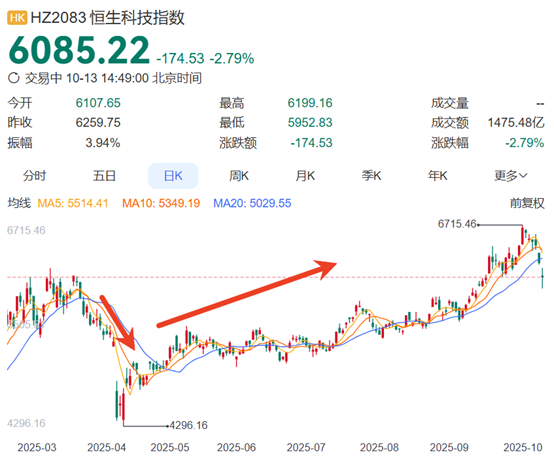 但从更长期看,关税对于科技行业的影响非常有限,从2025年4月初关税冲击可见。一方面,市场极度悲观的情绪会快速释放,此后逐步回归理性。另一方面,特朗普的关税政策摇摆不定,且以威胁为主。从2025年4月看,实际能够落地执行的关税远低于其威胁的程度,因美国同样难以承受高关税对通胀的冲击。当前特朗普对于降息诉求强烈,则需要遏制通胀抬头,大幅提高关税对其同样不利。4月关税威胁后很快特朗普就暂缓了关税征收,大部分国家仅征收10%。4月关税从威胁至执行只有一周的期限,而此次11月1日执行,尚有更足谈判、缓和时间。从4月指数反应看,在4月全球股市因关税暴跌后,纳斯达克100在4月9日上涨12%收回此前5个交易日跌幅,52个交易日即再创历史新高,恒生科技在同样五个交易日内反弹近14个点。