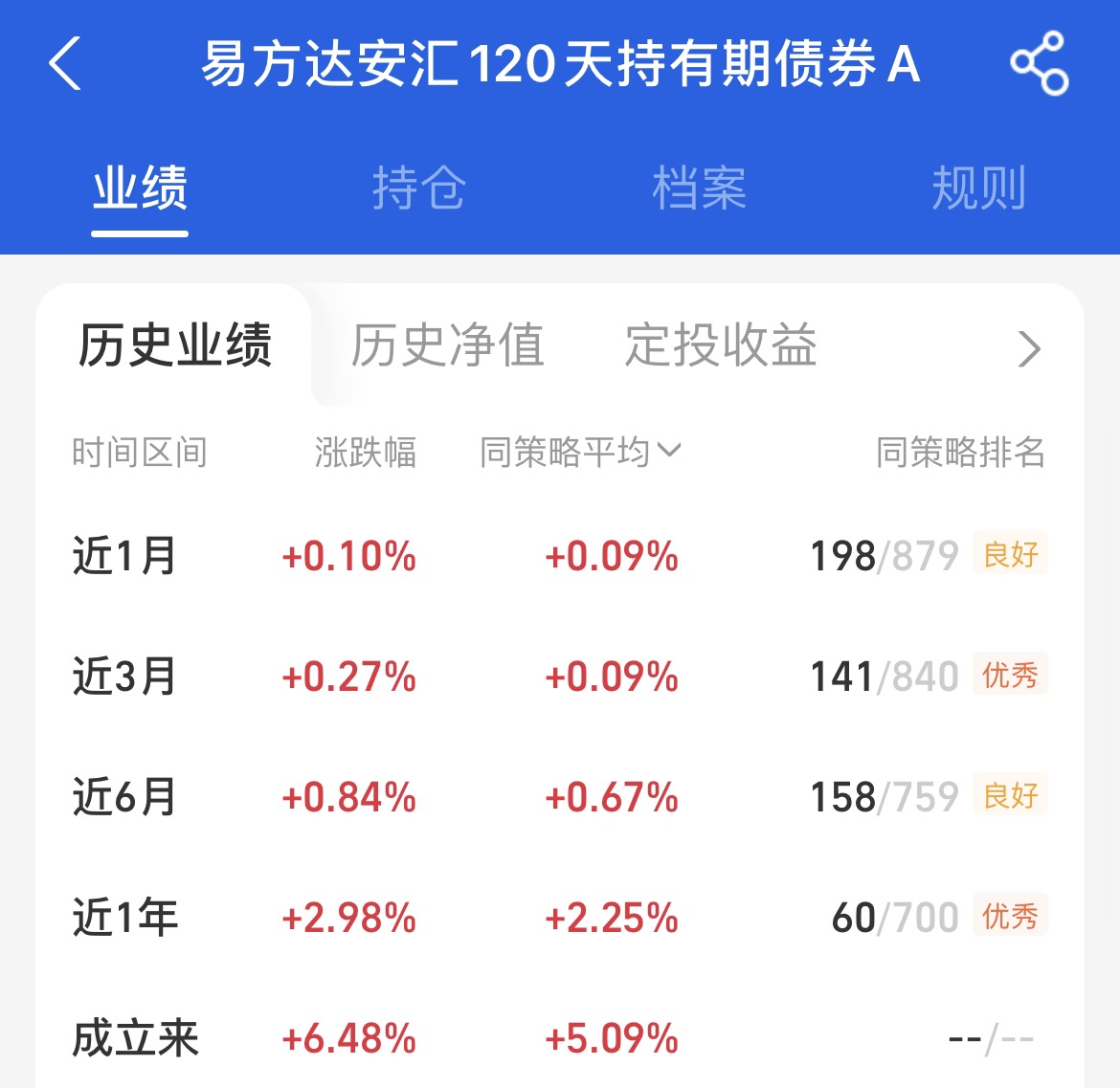 债市有触底反弹迹象了,今天继续稳健布局,易方达安汇120天持有期债券A中长纯债债