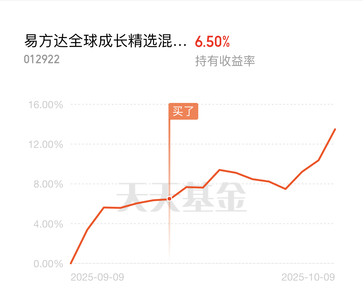 关税扰动让全球市场普跌,A股港股同步调整,不过降息周期要启,科技资产会先受益。我定投了$易方达全球成长精选混合(QDII)人民币C(OTCFUND|012922)$它聚焦全球科技龙头,能灵活避地缘风险,还能抓多市场机会。单赛道易踏空,这只全球配置更稳,近半年涨89.12%,短期波动是上车窗,等后续反弹。