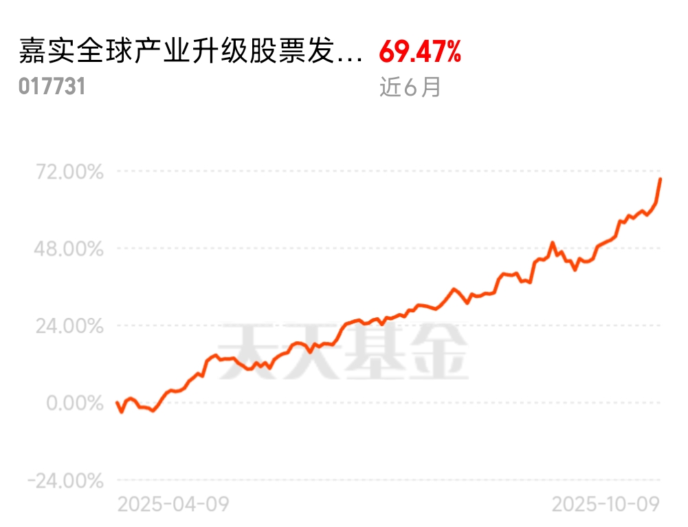 #稀土价格暴涨37%!稀土板块狂飙# 家人们,谁懂啊!美股一跌,大家反而更爱买QDII了,今早加仓榜全是它们的影子~尤其聚焦全球产业升级的QDII,覆盖的都是各地优质赛道,潜力很足。别被短期波动带偏,记住等跌的时候慢慢加,既不用追高,还能顺着全球升级的风口布局,这操作稳得很,这里就做了点这只的加法,半年涨幅近70%,这也很能打了$嘉实全球产业升级股票发起式(QDII)C$