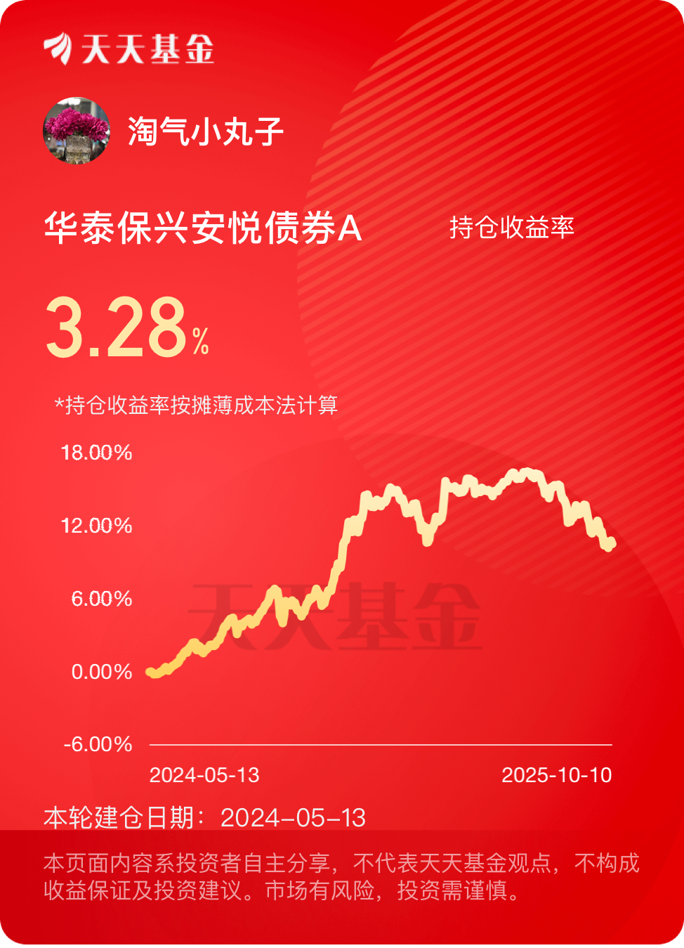 #大消费板块逆市拉升!行情能否持续?# 今天市场波动还是挺大的,还是买债吧,$华泰保兴安悦债券A$ #晒收益#
