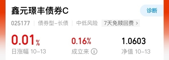 $鑫元璟丰债券C$ 今天收了1个蛋