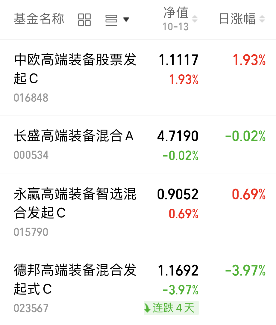 今日大盘震荡调整,市场超3600只个股下跌,不少板块调整,不过高端装备表现还不错,特别是$中欧高端装备股票发起C(OTCFUND|016848)$实现逆势上涨1.93%,表现优秀。