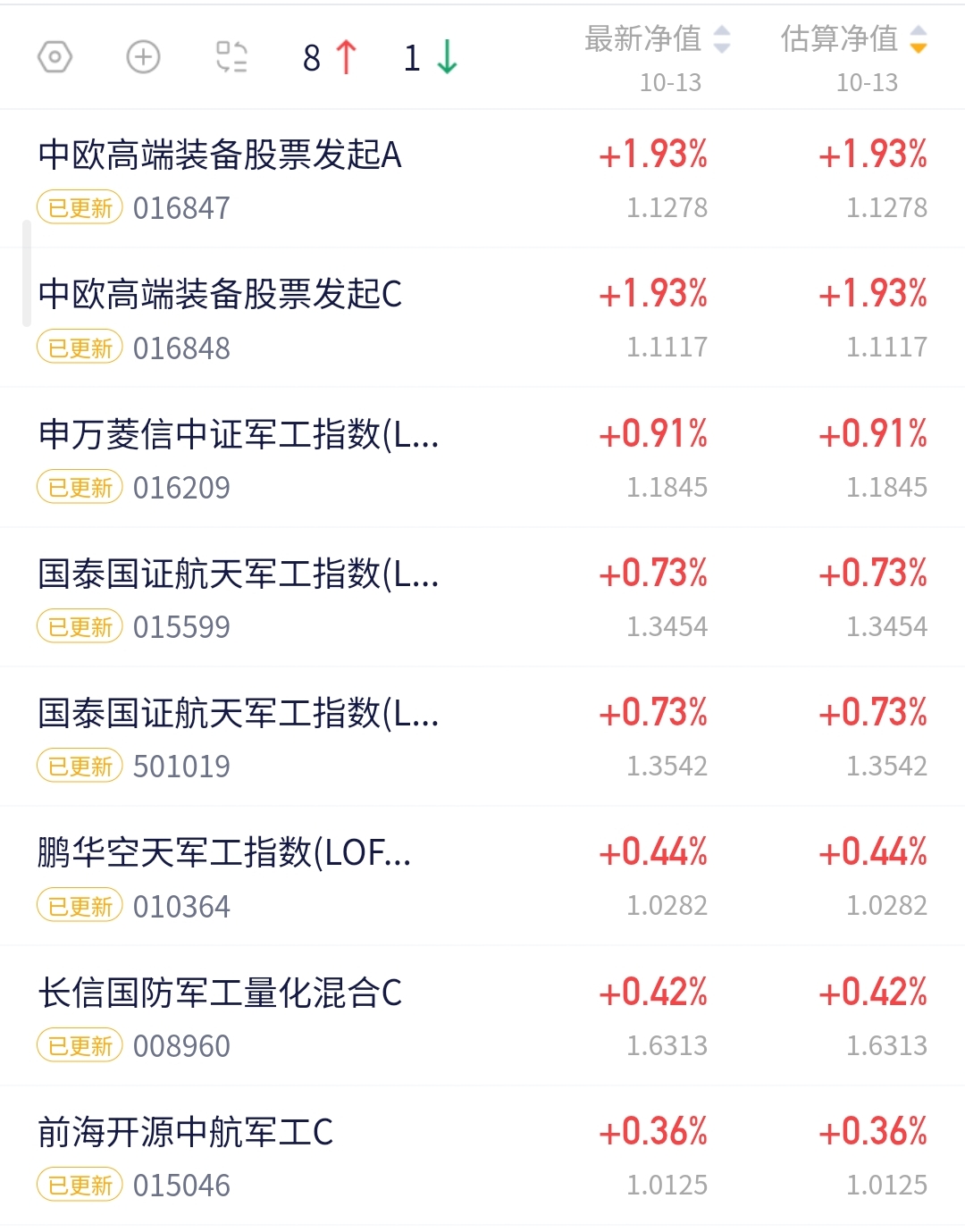 周一开门红大家今天都吃肉了吗?我看军工赛道今天逆势上涨爱了爱了~$中欧高端装备股票发起C(OTCFUND|016848)$今天收涨1.93%,做为主动管理基业绩还不错,在一众军工赛道基中今天top1~咱就说这收益谁能不爱呀