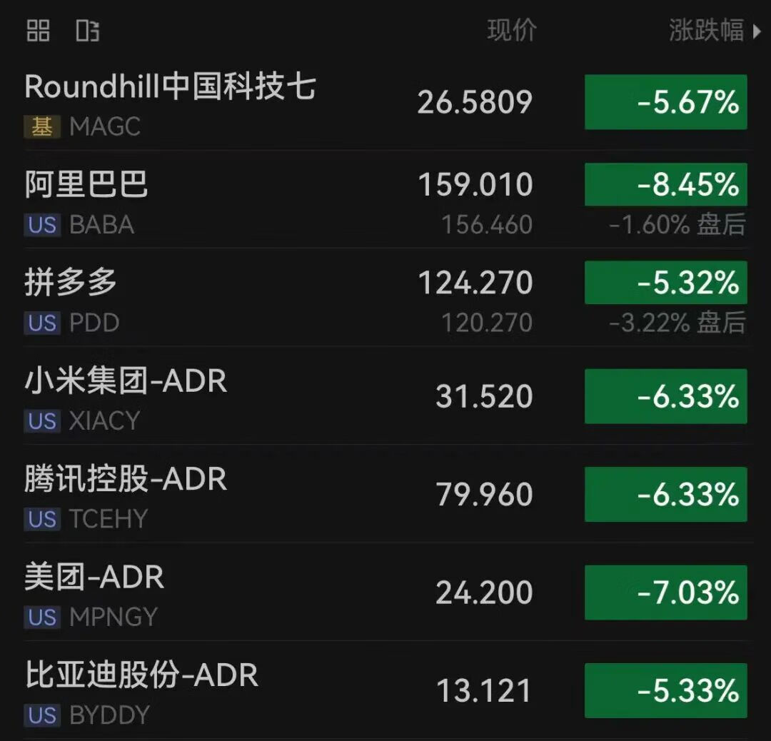 2、再看下上周五美股的“中国资产”的表现。——跌幅更大。