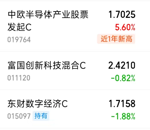 今天A股三大指数集体调整,不过午后拉升,跌幅收窄不少,半导体板块逆势上涨,表现优秀,$中欧半导体产业股票发起C(OTCFUND|019764)$+5.60%,涨幅领先,并创近一年新高,牛!
