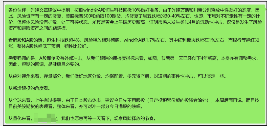 但是整体风险没有扩散,尤其是黄金今天上午还破了历史新高,证明市场未发生类似4月的流动性冲击,仅仅是发生了风险资产和避险资产之间的跷跷板。