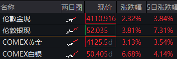 北京时间1点左右,伦敦银现货已经站上52,黄金站上4110,左脚踩右脚目前还在继续。