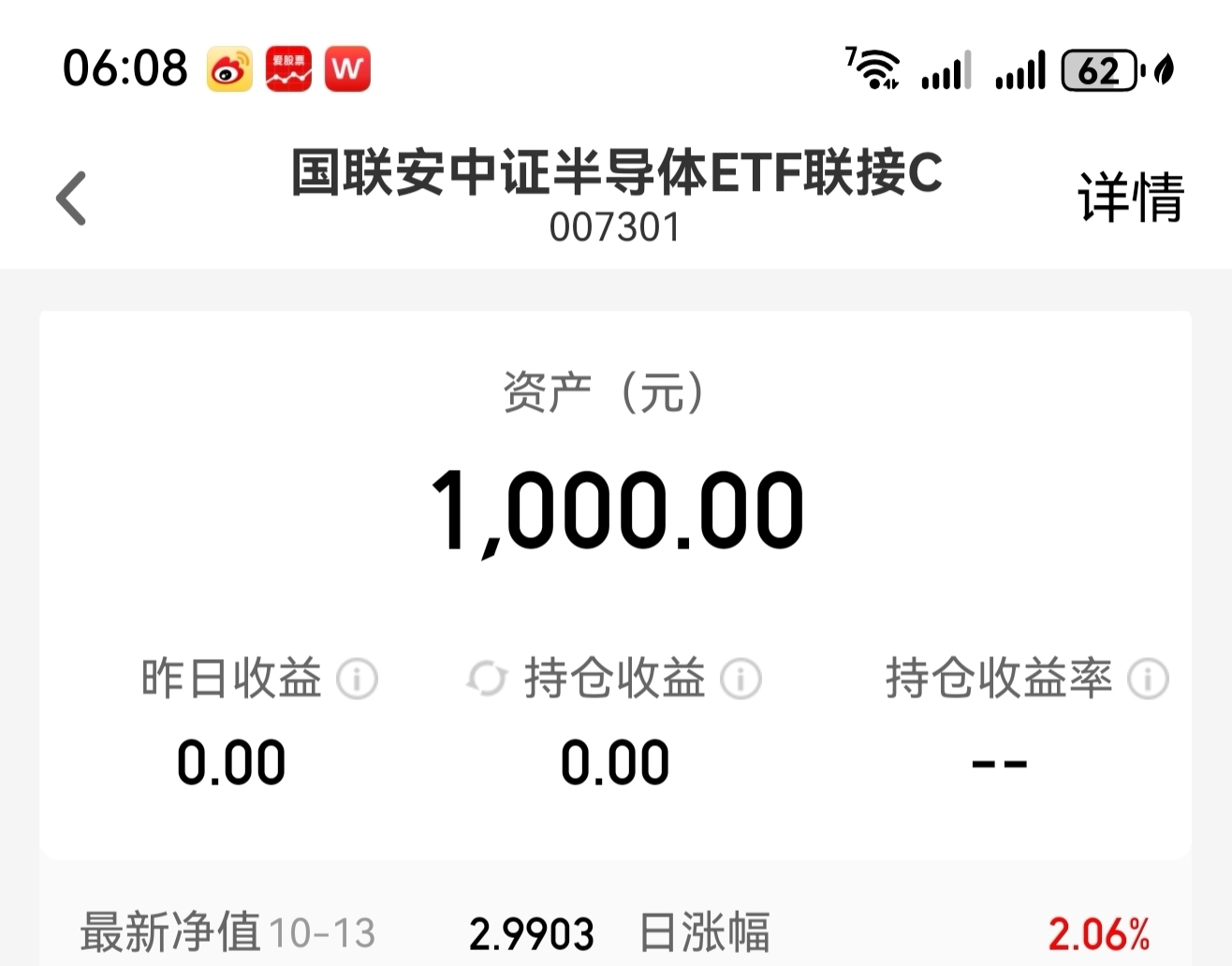 至于在昨天选择试试买的某个半导体基金,以后等在后面的时候,再根据情况考虑选择是否可以陆续再加仓再买部分资金打算了。