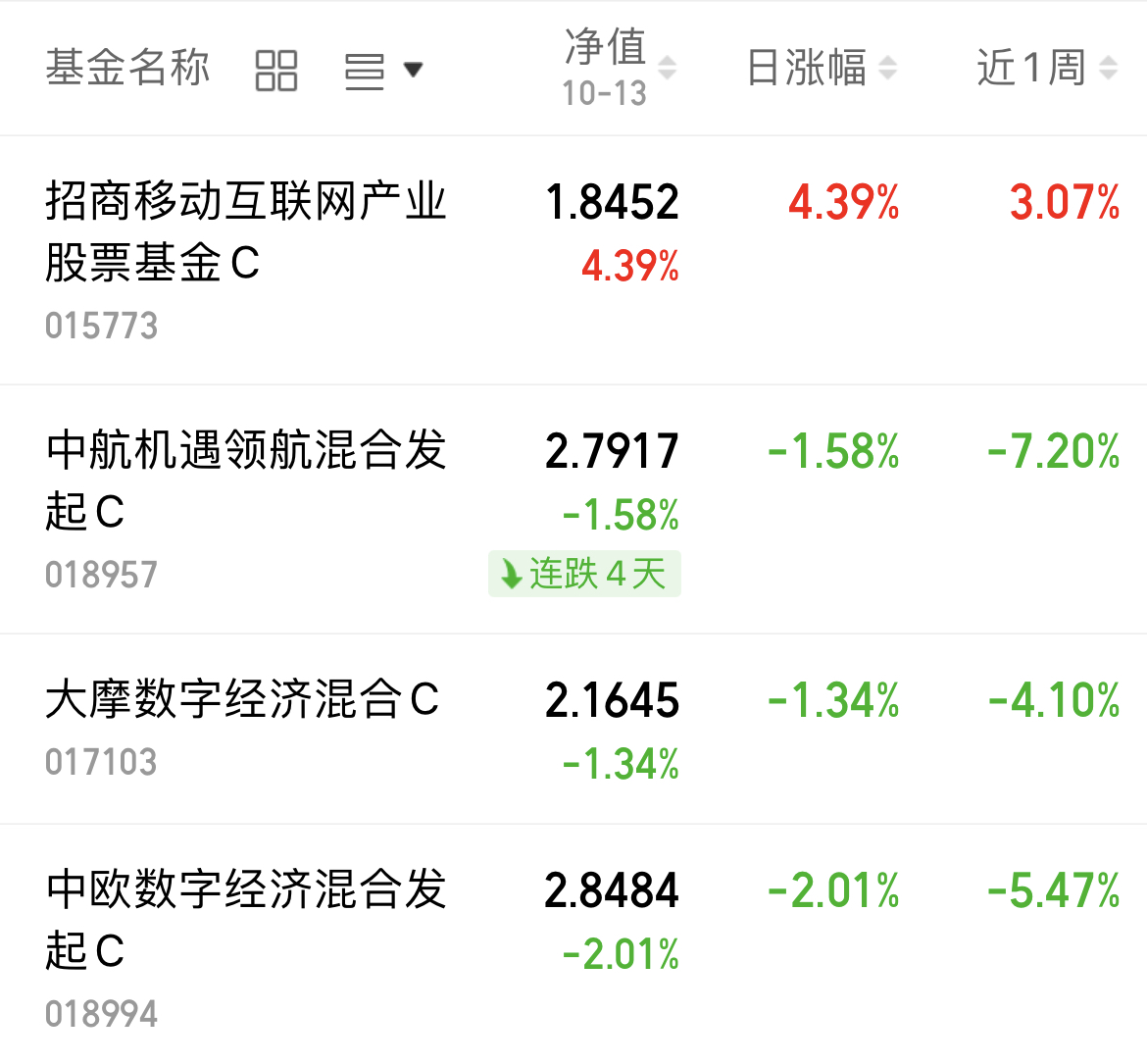 $大摩数字经济混合C(OTCFUND|017103)$昨天下跌1.34%,近一周下跌4.10%