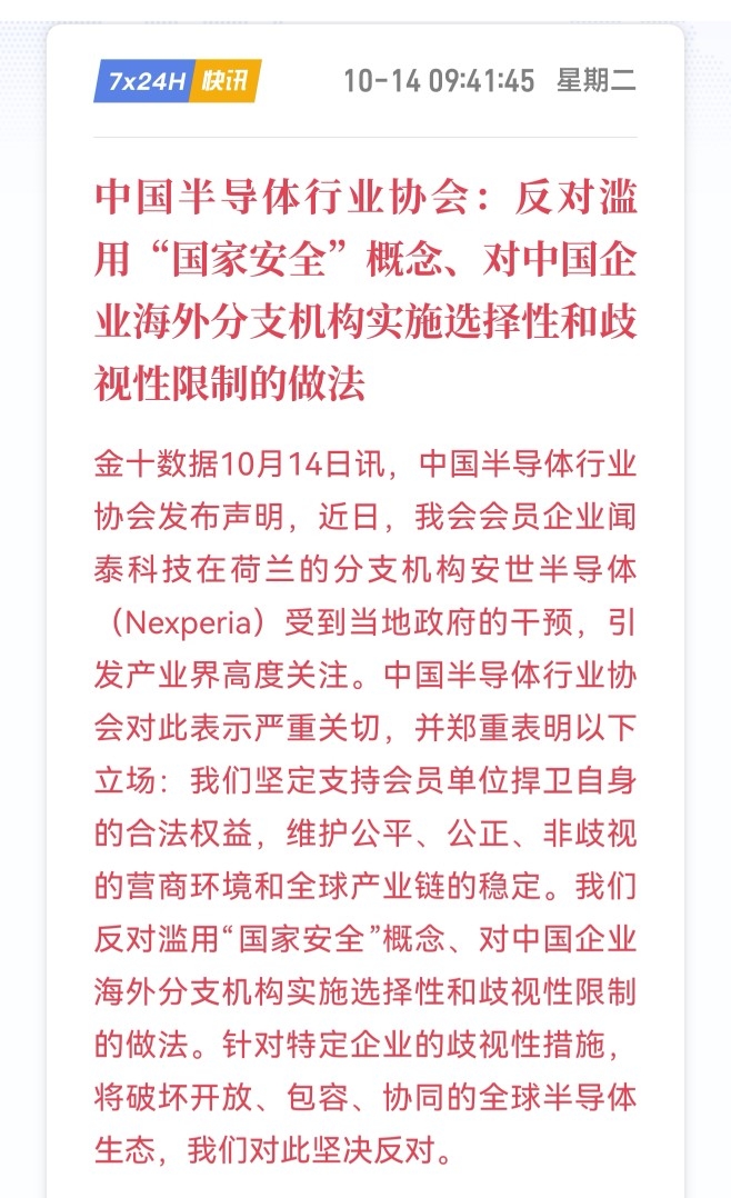 中国半导体行业协会:反对滥用"国家安全"概念、对中国企业海外分支机构实施选择性和