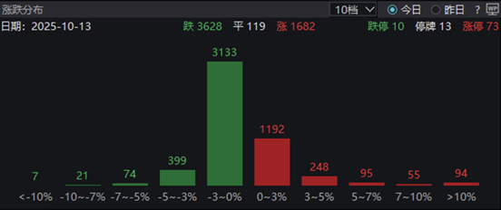 涨跌分布方面,两市跌多涨少。午后资金回流后,多数板块跌幅有所回补。板块方面,有色金属、环保、银行等行业领涨。半导体产业链整体表现同样较好,科创50指数逆势上涨1.40%。
