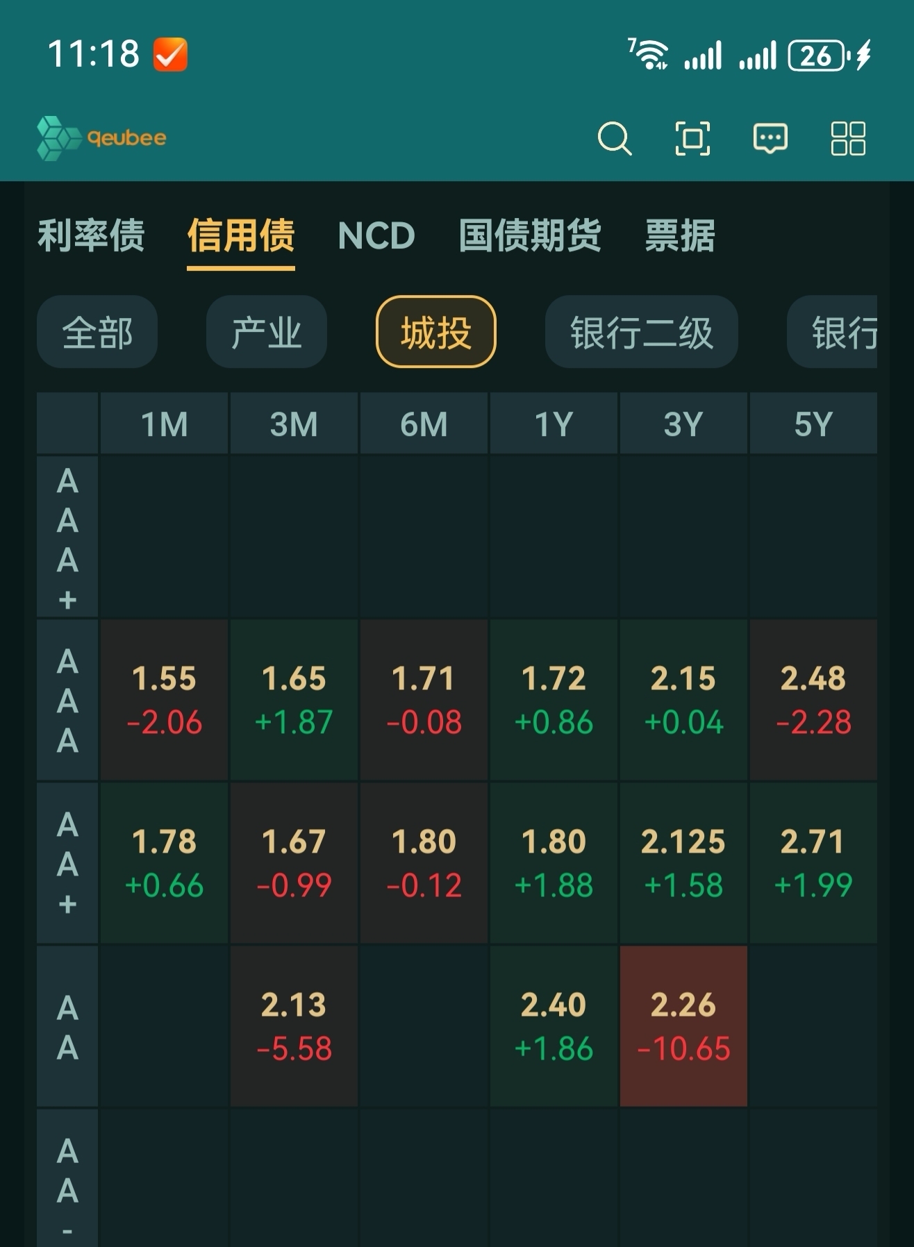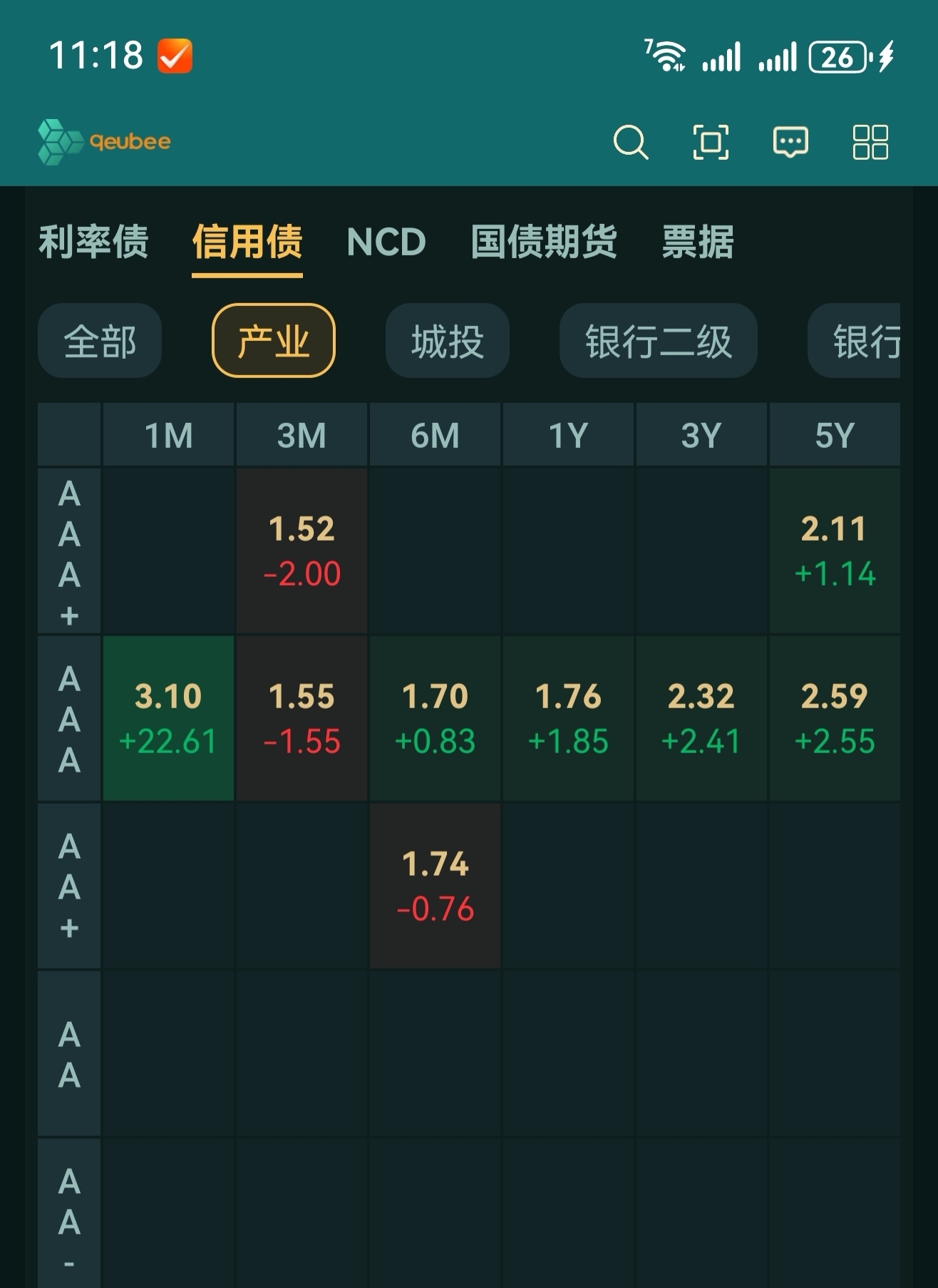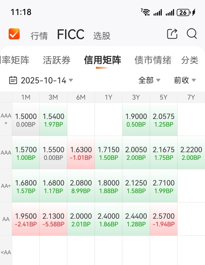 在今天上午11点18分,观察连信用债行情,在今天也开始再次转表现差了。红色,是涨