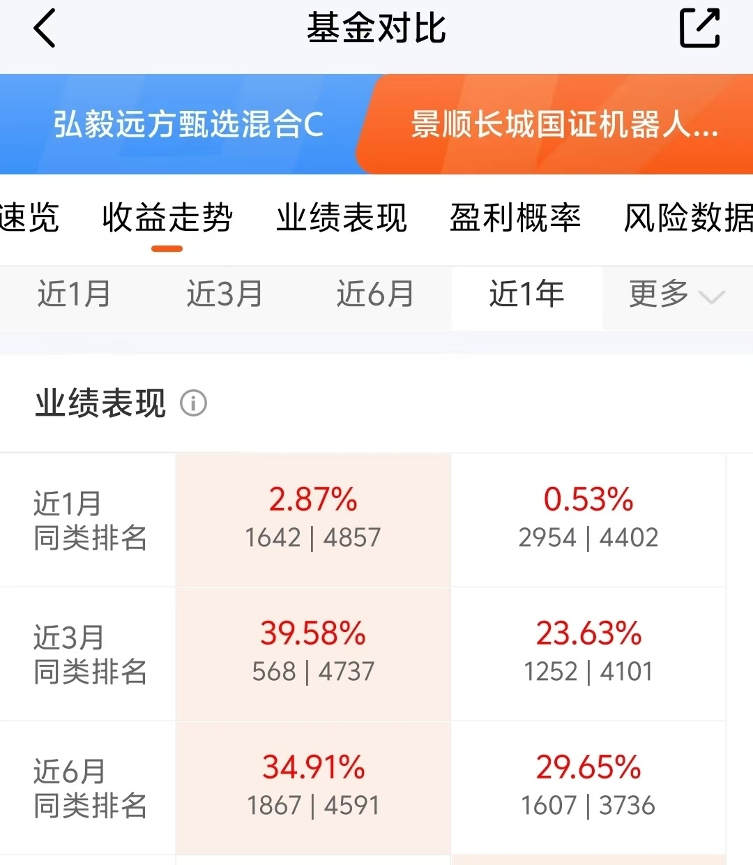 美股全面反弹,风险已经全面释放,咱们这边也重新进入新一轮上涨,昨天没买的今天或许是最后的买点。我之前埋伏的弘毅远方甄选混合C,是机器人里的“黑马基”,操作比老牌机器人灵活,近三个月暴涨39.58%,爆发力超强。而且它业绩持续领先,真正做到涨得多、跌得少,对比同类产品表现很亮眼。现在赛力斯机器人和字节合作落地,机器人行业前景可观、潜力大,跟着趋势走准没错,我今日打算继续加仓冲。