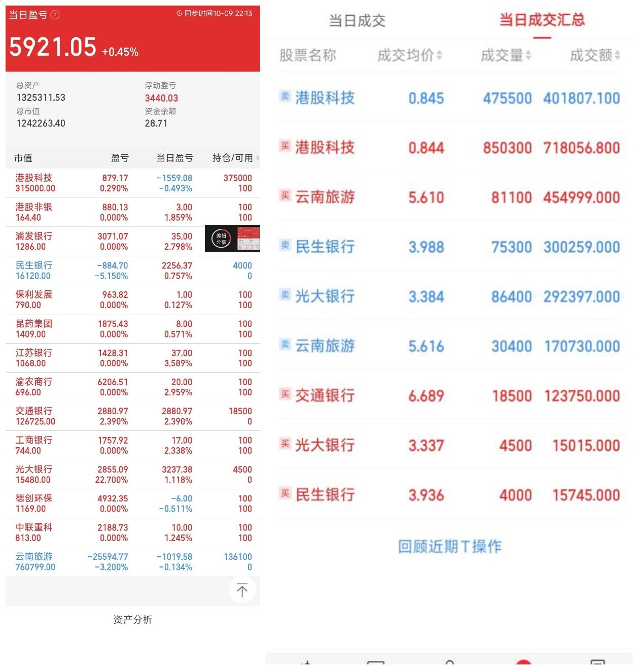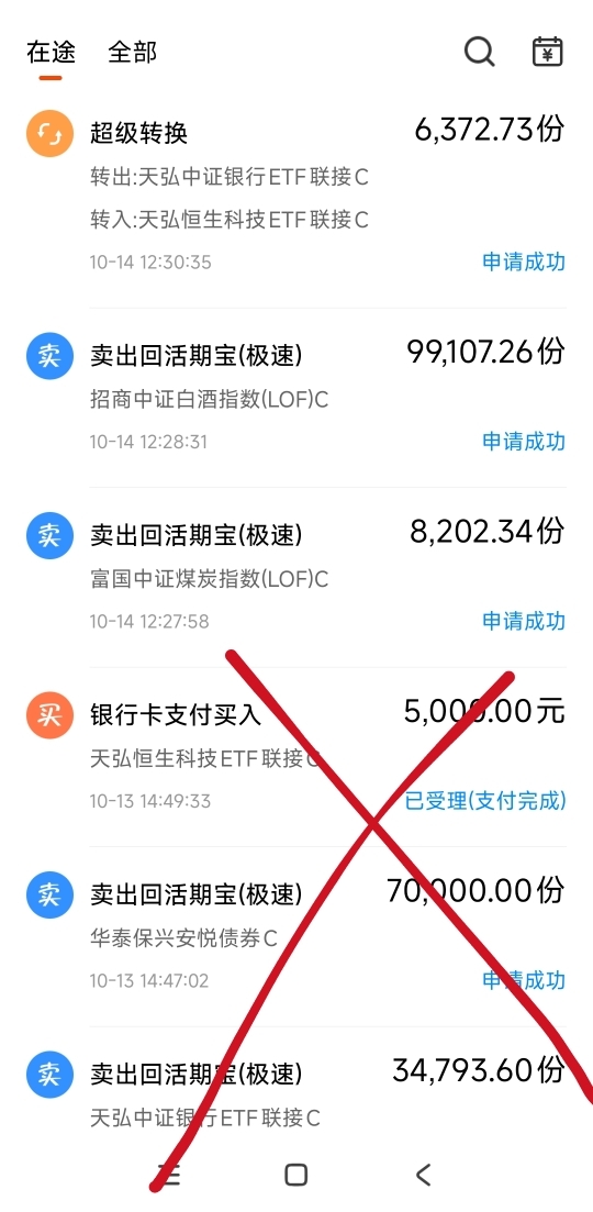 股票也红了,但是跳水了2/5!说股票能管住手的都是自欺欺人,上午交易了200个,是我20年收入,收不了手啊,重仓的都旅游和港股科技是跌的,今天卖基金给股票和场内留位置!