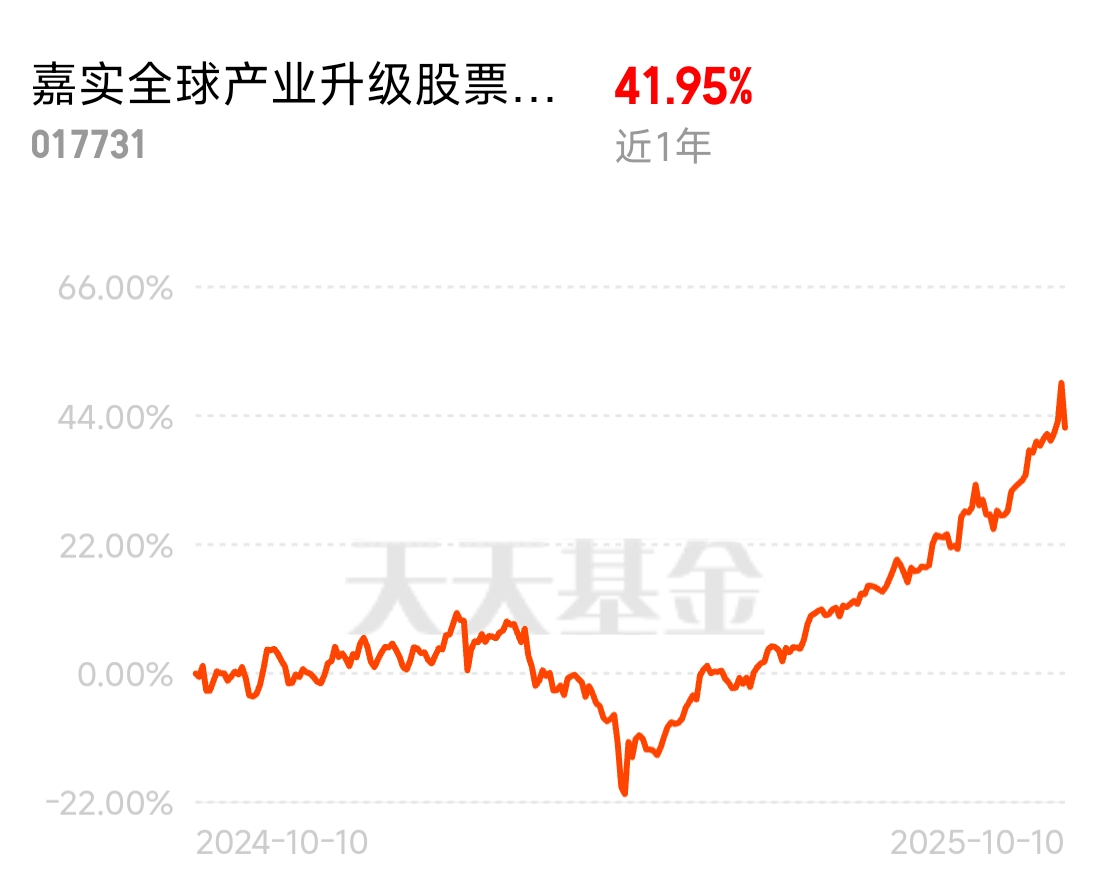 大市场,近一年业绩涨幅41.95%,表现亮眼,深度聚焦产业升级赛道,未来市场潜力满满,值得关注起来$嘉实全球产业升级股票发起式(QDII)C$