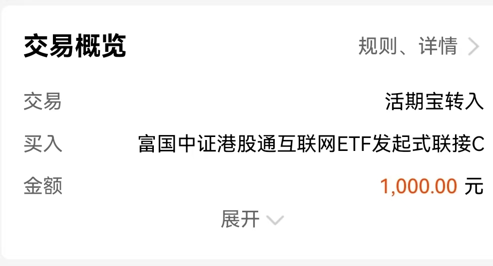 早上麦爸还瞅着账户挣钱呢,没高兴一会儿,反手就倒亏了!但咱说,这跌了不就是机会嘛?我直接给$富国中证港股通互联网ETF发起式联接C(OTCFUND|014674)$充了 1000 块!这只基今天也跟着跌了 2.2%,越跌我越敢加!
