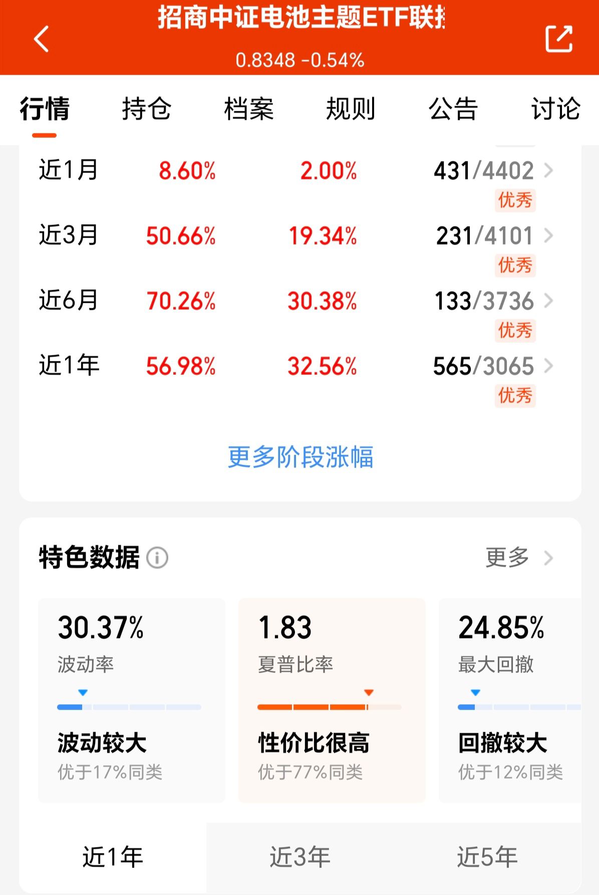 今日A股市场冲高回落,电池赛道也有所波动,但从长期角度来看,当下国内锂电池产业具备全球竞争力,同时行业景气度持续向好,所以短期回调不改长期上涨趋势,我果断加仓一波$招商中证电池主题ETF联接C(OTCFUND|016020)$其持仓固态电池概念占比40%,储能概念占比60%,所以上涨弹性空间更大,短短三个月里涨幅就高达50.66%,业绩远远领先同类,并且当前电池赛道趋势明显,很有可能成为未来主线,我也准备提前埋伏起来了!