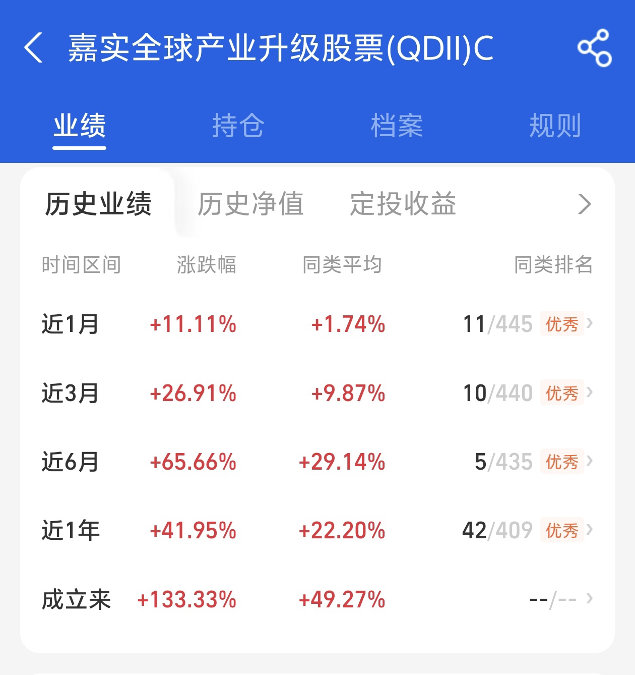 非常的不错呀,全球产业的基金表现的也是非常的厉害,收益率高!$嘉实全球产业升级股
