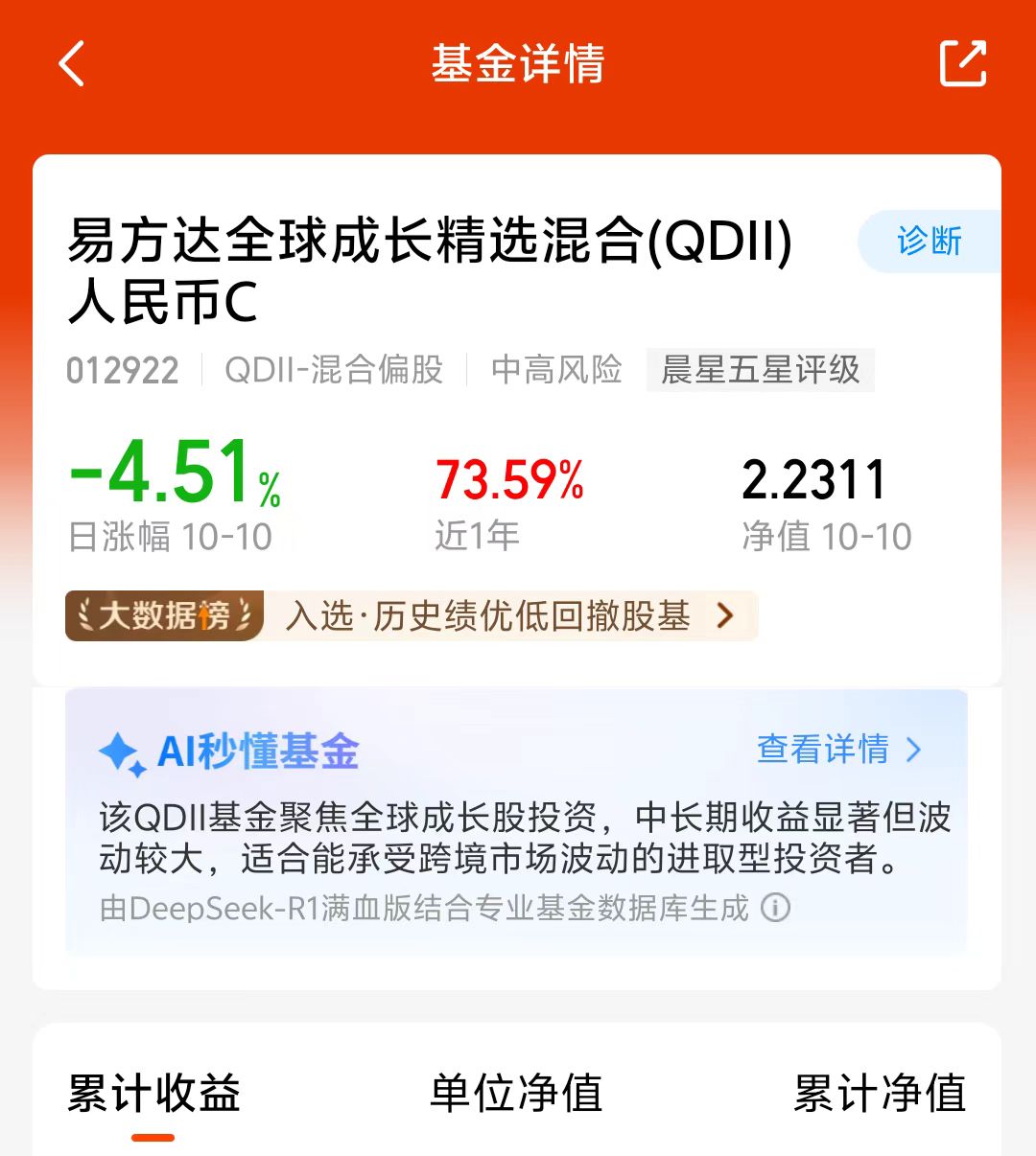 美股昨晚涨了不少,大A和港股今天震荡回调了,近期全球市场波动比较大,轮动速度太快了,$易方达全球成长精选混合(QDII)人民币C(OTCFUND|012922)$持仓可投全球科技板块,美股、港股和A股都能投,经理调仓能力也很不错,这只是历史绩优低回撤榜一,回撤也控制的很好,近一年涨了73.59%,看好这个方向,我准备分批加仓了!