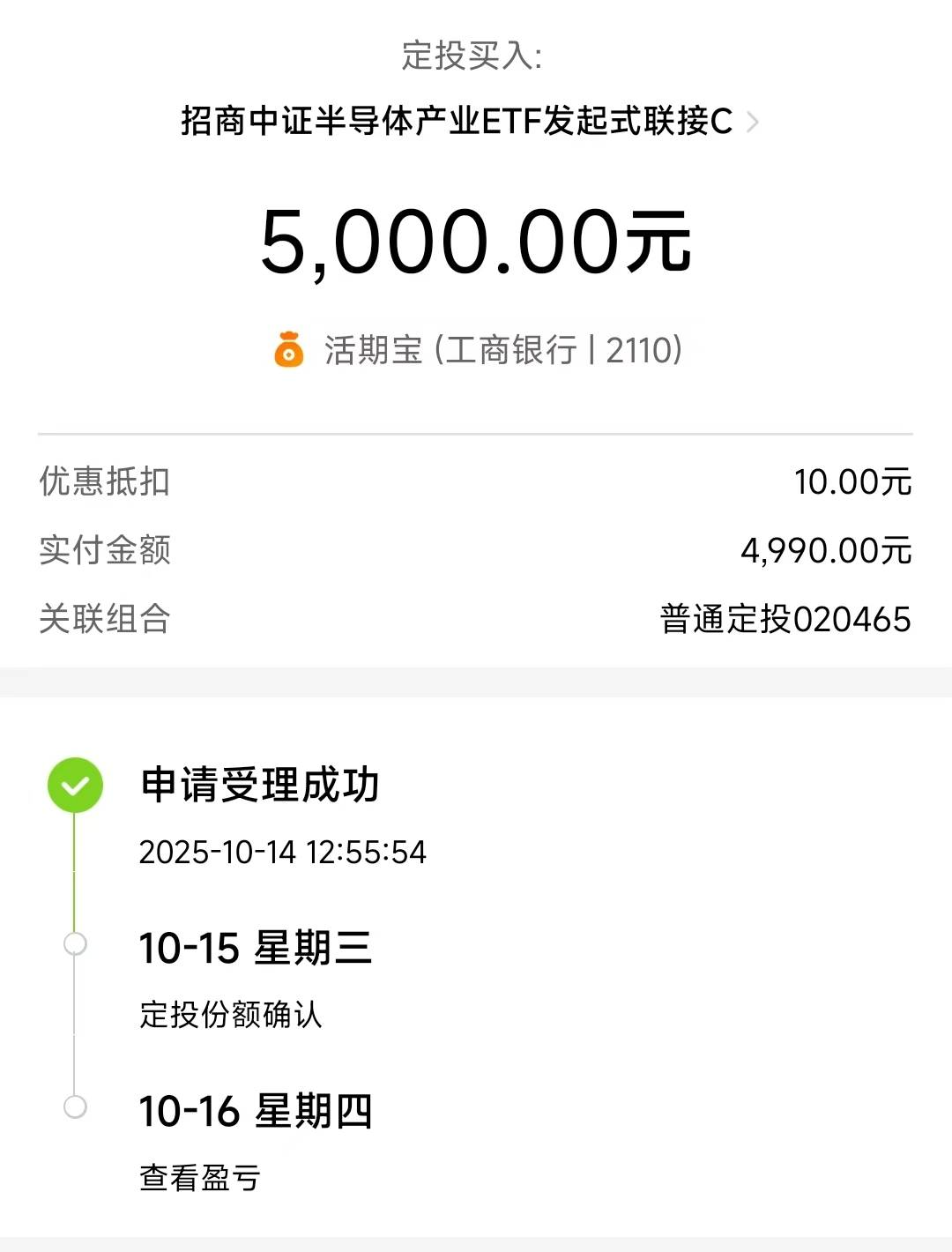 今天A股三大指数高开低走,创业板跌幅居前,昨天领涨的半导体板块今天领跌,倒车接人,加5000$招商中证半导体产业ETF发起式联接C(OTCFUND|020465)$,受海外巨头达成巨型算力需求协议等催化因素的驱动,半导体板块近期表现活跃,同时在自主可控和国产替代趋势持续深化的双重支撑下,半导体板块依然有较大的上涨空间,当然不可否认半导体板块是弹性较大的赛道,急涨急跌是常态,大跌也可以一次性释放风险,今天上车博反弹!